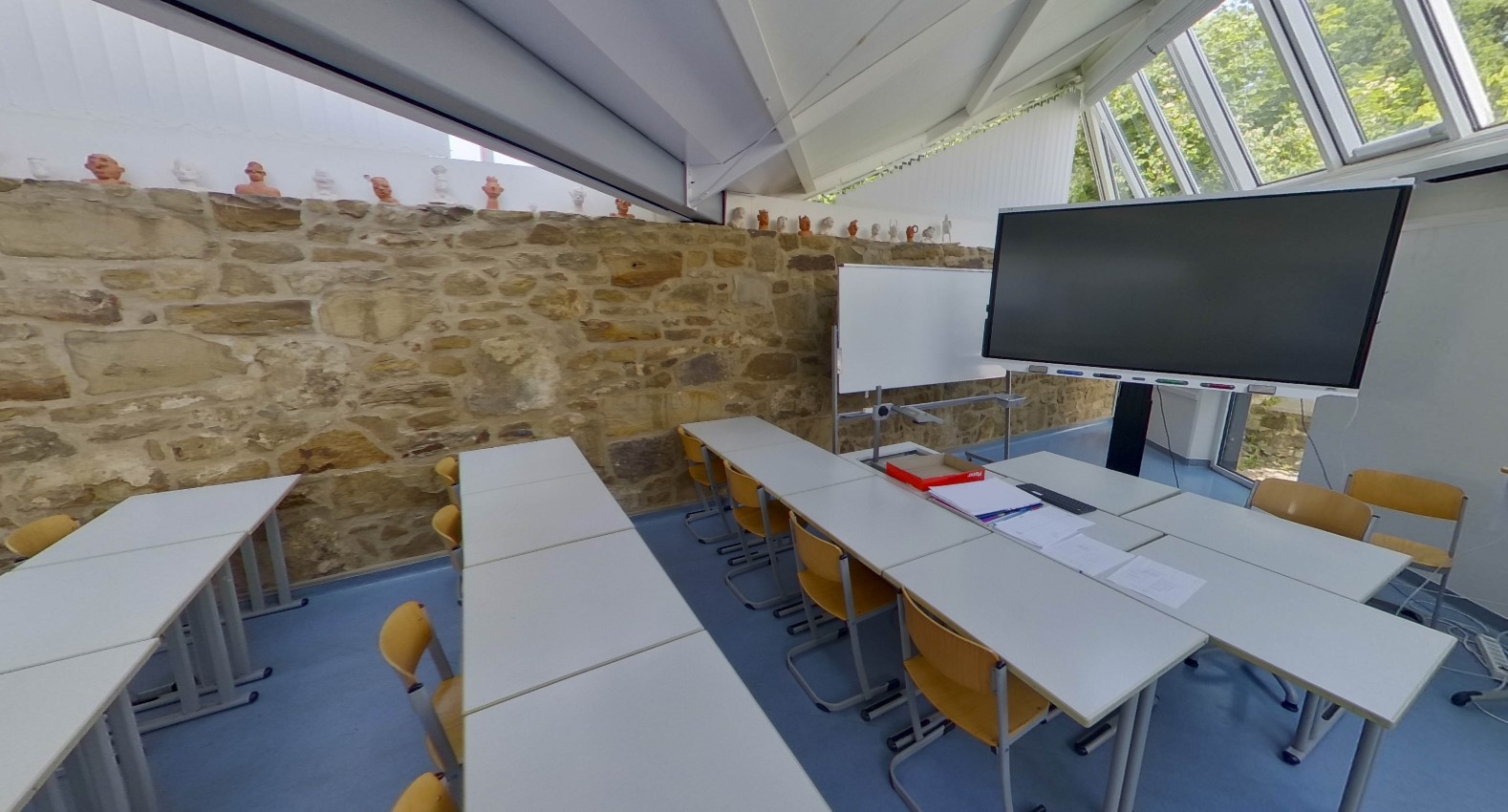Diese eindrucksvollen 360-Grad-Aufnahmen verdanken wir der Firma bgis GmbH, die diese im Rahmen der anstehenden Baumaßnahmen erstellt hat. Hier können Sie Panorama-Aufnahmen des Computerraums im Hauptgebäude, des Biologie-Fachraums, eines typischen Klassenraums im Westtrakt, eines Kunst- und zweier Musikunterrichtsräume betrachten.