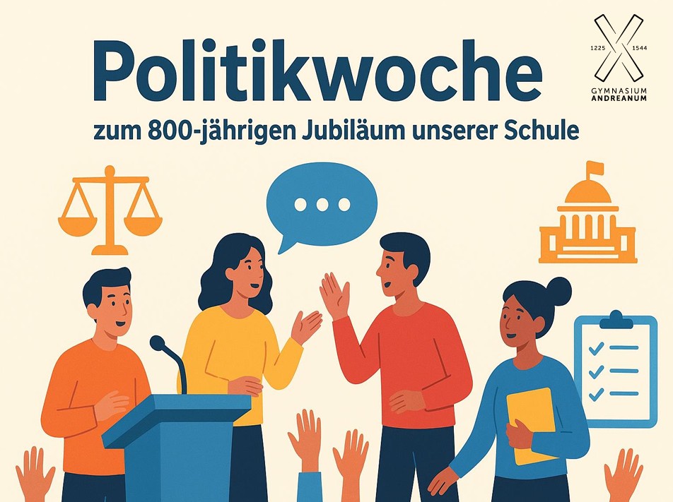 Liebe Freunde des Gymnasium Andreanum,weiter geht´s mit den Aktionswochen. Im September stehen mit den Fachgruppen Politik einerseits und Neue Sprachen andererseits gleich zwei Projekte im Terminkalender. |